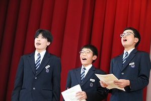 本日は令和8年度前期の生徒会役員、委員会の委員長や副委員長、学級役員の任命式がありました。代表で任命書を受け取る生徒だけでなく、体育館全体に凛とした雰囲気がありました。リーダーだけが頑張るのではなく、リーダーを選んだ一人一人もファーストペンギンになれるように頑張っていきましょう。また、任命式の後には1年生が校歌の練習を行いました。素敵な表情で歌う姿をこれからも大切にしていきましょう。